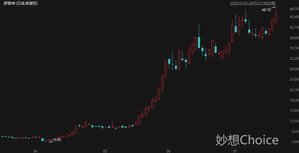创新型生物制药企业舒泰神周五盘中一度涨超9%,最高触及48.78元/股,刷新历史新高。拉长时间来看,舒泰神股价自4月低点迄今累计最大涨幅726.78%。天风证券分析师杨松等人6月15日研报指出,舒泰神深耕治疗性药物领域二十余载,研发及销售管线丰富,看好公司进入加速发展阶段。STSP-0601在研血友病新药获得突破性疗法认定,已提交附条件上市申请。STSA-1002ARDS适应症在降低28天全因死亡率等指标上显示出有效性。