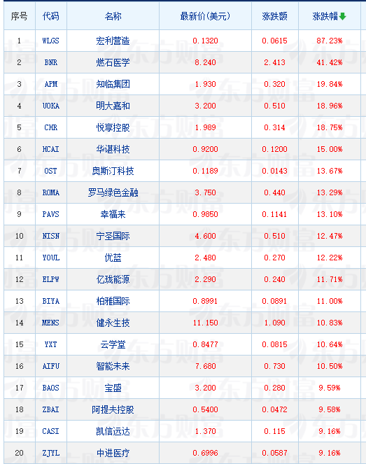 周三热门中概股多数上涨。纳斯达克中国金龙指数(HXC)收高0.61%。