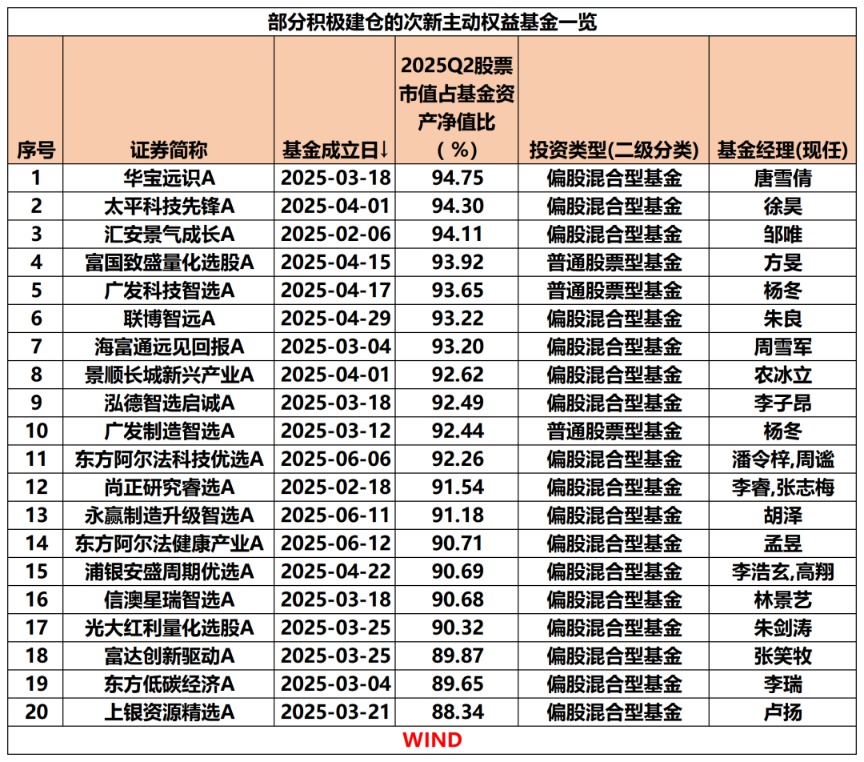 随着2025年基金二季报披露完毕,次新主动权益基金的建仓情况也浮出水面。