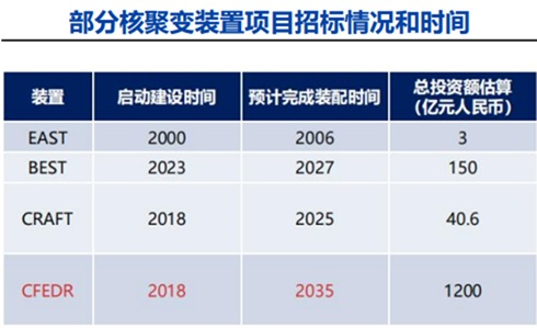 我国在核聚变领域也走在了前面。据爱建证券梳理,我国的EAST装置(全超导托卡马克核聚变实验装置)早在2000年就已启动建设,CRAFT(聚变堆主机关键系统综合研究设施)和CFEDR(中国聚变工程示范堆)在2018年启动建设,BEST(紧凑型聚变能实验装置)则在2023年启动建设。