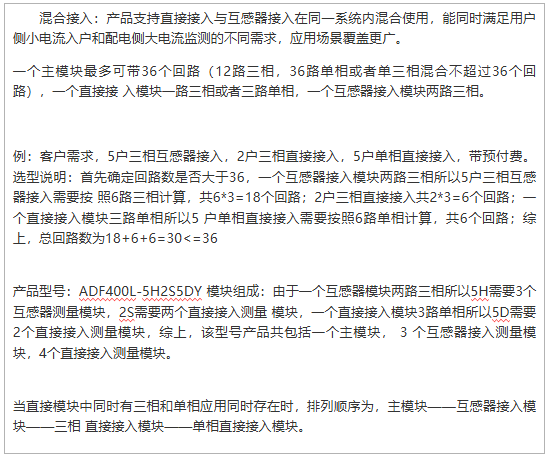 ADF400L采用独特的“主模块+扩展模块”架构。一个主模块最多可管理36个单相或12个三相用电回路。您可以根据项目实际户数,像搭积木一样选配相应的直接接入模块或互感器接入模块。这种设计带来了革命性的改变:空间节省:将数十块传统电表的功能浓缩于一个紧凑的仪表箱内,极大减少了配电柜的占用空间。成本优化:您只需为实际需要的回路数付费,后期如需扩容,仅增加相应模块即可,初始投资和未来升级都更加经济。